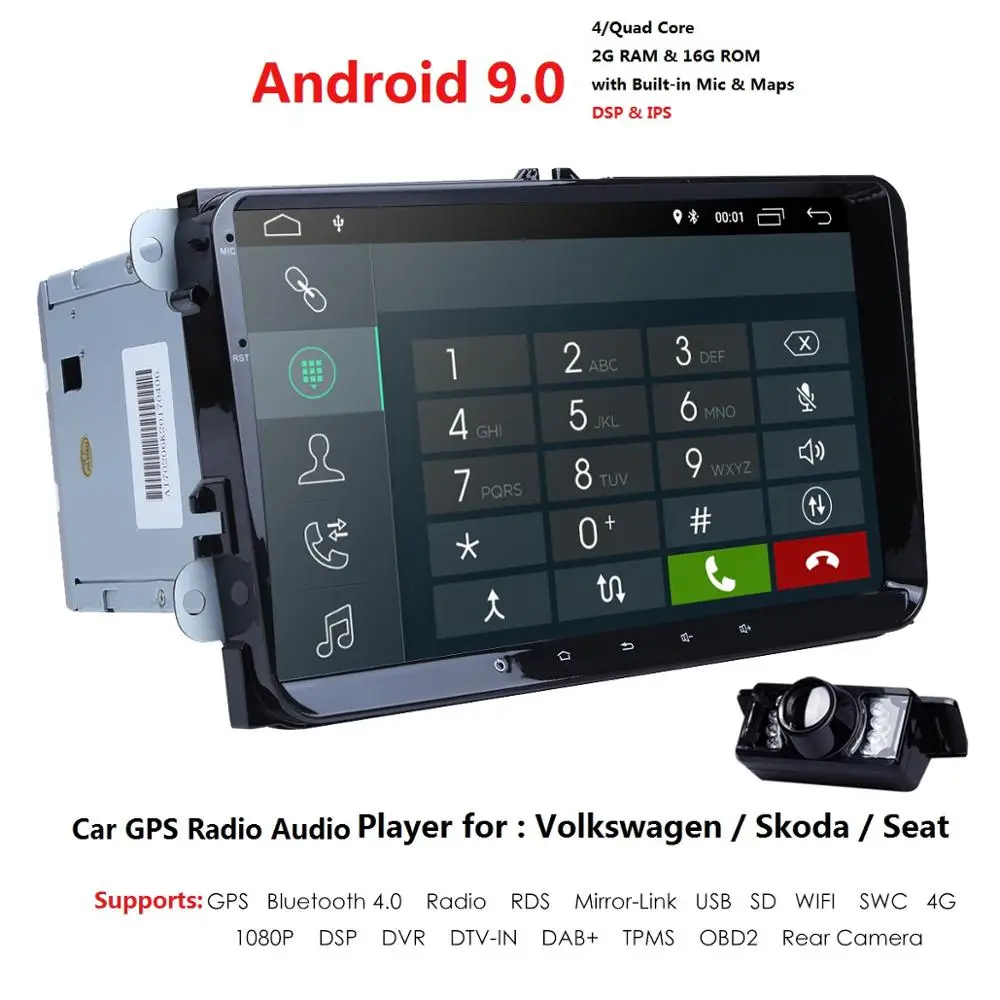 HIGH QUALITY 2GB RAM 2 Din 9" Car Stereo Radio For VW/Volkswagen/POLO/PASSAT/Golf/Skoda/Octavia/Seat No-DVD WIFI